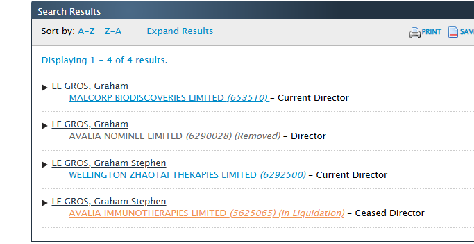 The Shareholders of Avalia Immunotherapies Ltd were multiple, including Avalia Nominee Ltd (12.9%) and Malcorp Biodiscoveries Ltd (29.8%). Seems that, despite massive investment, Hamish Findlay of Wellington UniVentures’ ‘expert advice’ (as stated in the above screenshot) about intellectual property and commercialisation, didn’t work out?!
