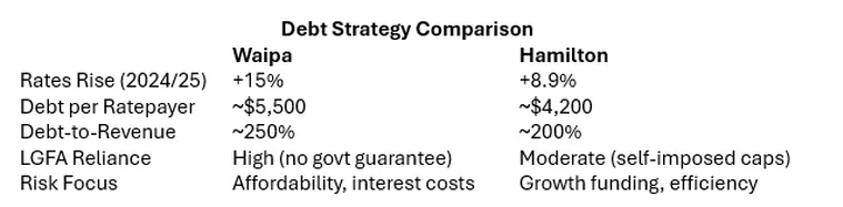 This equates to one of the highest debt-per-ratepayer ratios among local councils nationwide. Eeek! Councillors were cautioned at the time of the election that Waipā was heading into a perfect financial storm. Yet, despite these warnings, an additional $50 million was borrowed, pushing the district’s total LGFA debt to $392 million.