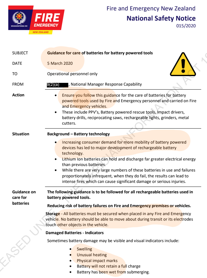 It’s been nearly five years since Fire and Emergency NZ published this commissioned report (which was actually very good) about the health and safety risks involved, to their staff, volunteers and the public, from lithium-ion fires: