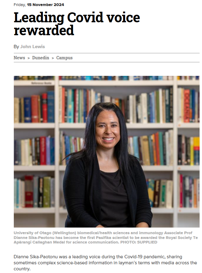 Le Gros’ investment looks to have paid off in bucket loads, as seventeen years later, she’s a Fulbright Scholar, having completed a stint as immunology scientist at Harvard University (coincidentally where Jacinda has a new role), and is now full Professor of Immunology AND Deputy Vice-Chancellor, Pacific, at Otago University. She was even awarded a medal earlier his year, for her covid era communication propaganda. Good job!