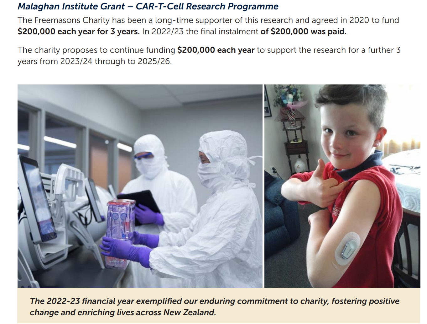 Graham Wrigley pictured above with Le Gros at the Malaghan Inst, is also a Trustee of the Freemason NZ Charity and Grand Master of all 205 NZ lodges nationwide, comprising >6,500 members (2021). When asked about “the secrets” of Freemasonry, Wrigley responded: