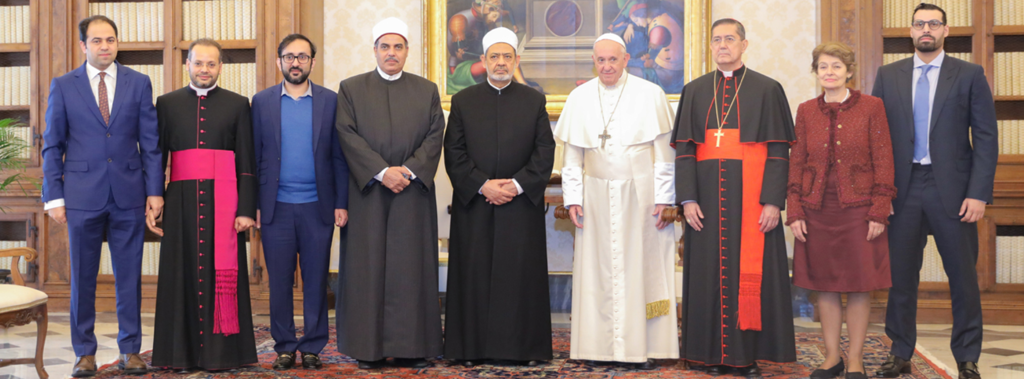 Pope Francis, (then) head of the Catholic Church, and His Eminence Ahmed Al-Tayeb, Grand Imam of Al-Azhar, signed the Document on Human Fraternity for World Peace and Living Together, in Abu Dhabi, United Arab Emirates. (from their website):