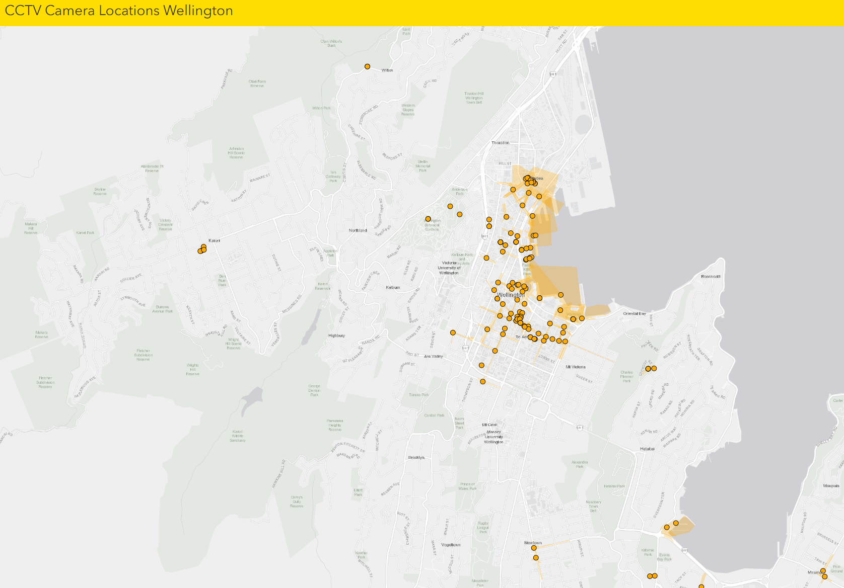 Undoubtedly, some of these ‘services’ include an App like Antenno to snitch on neighbours and CCTV to catch those dastardly deviants. And here’s a map of the locations of some of those cameras in Wellington, which is claimed to be “one of the safest cities on Earth, and Wellington City Council [and] supports that by pro-actively monitoring our urban public spaces through our closed-circuit television network, City Safety Control Room. This CCTV surveillance system is a Council-led harm reduction initiative and is strongly supported through our partnership with the Wellington Central Police.”