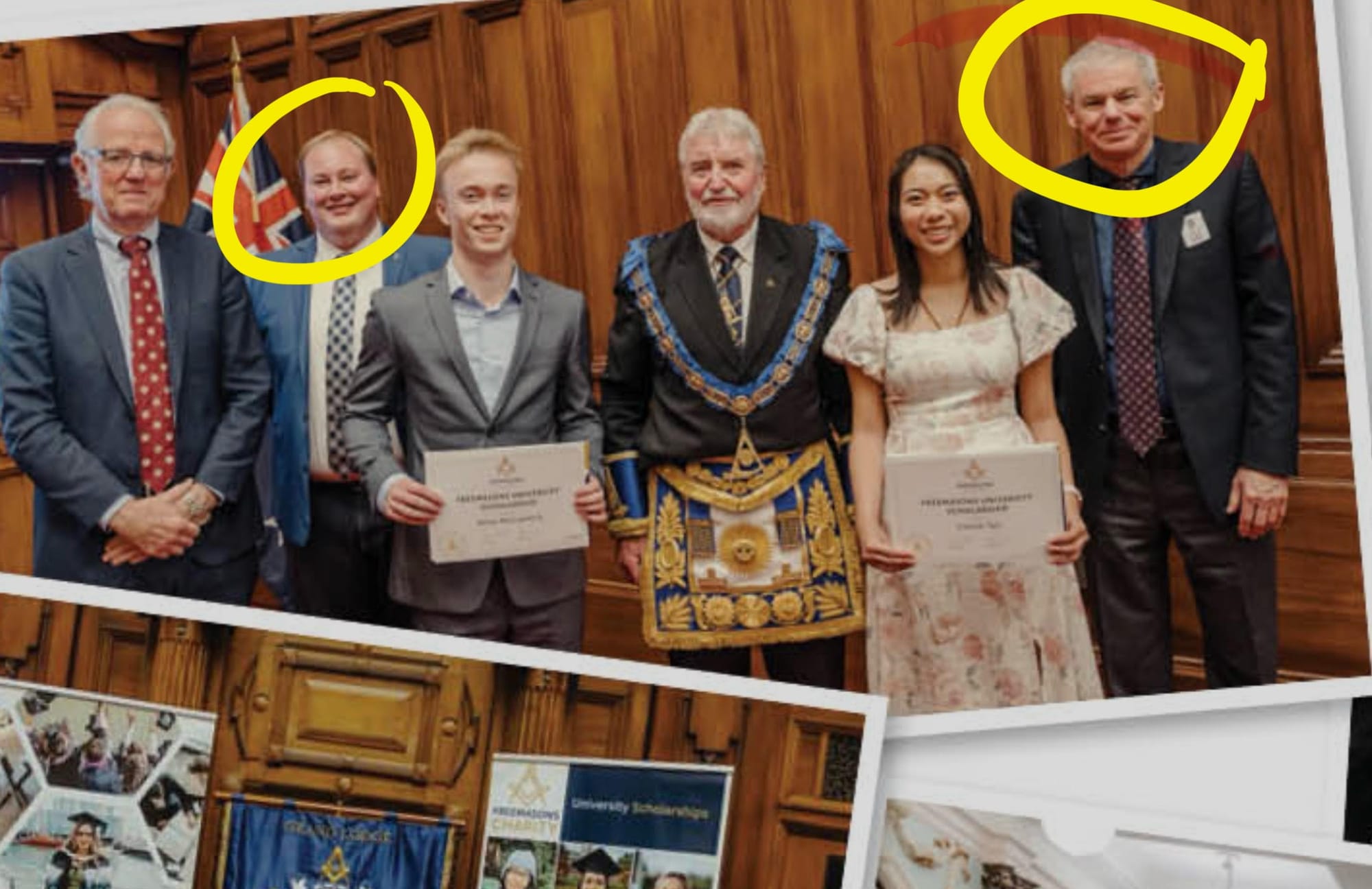 Before I finish, I’d like to pull my readers’ attention to another recipient of a Freemason Scholarship (2018) - who plays a large part in the covid era scam: Brad Olsen. Pictured here at the Freemason’s award ceremony at Parliament buildings last year - alongside Le Gros: