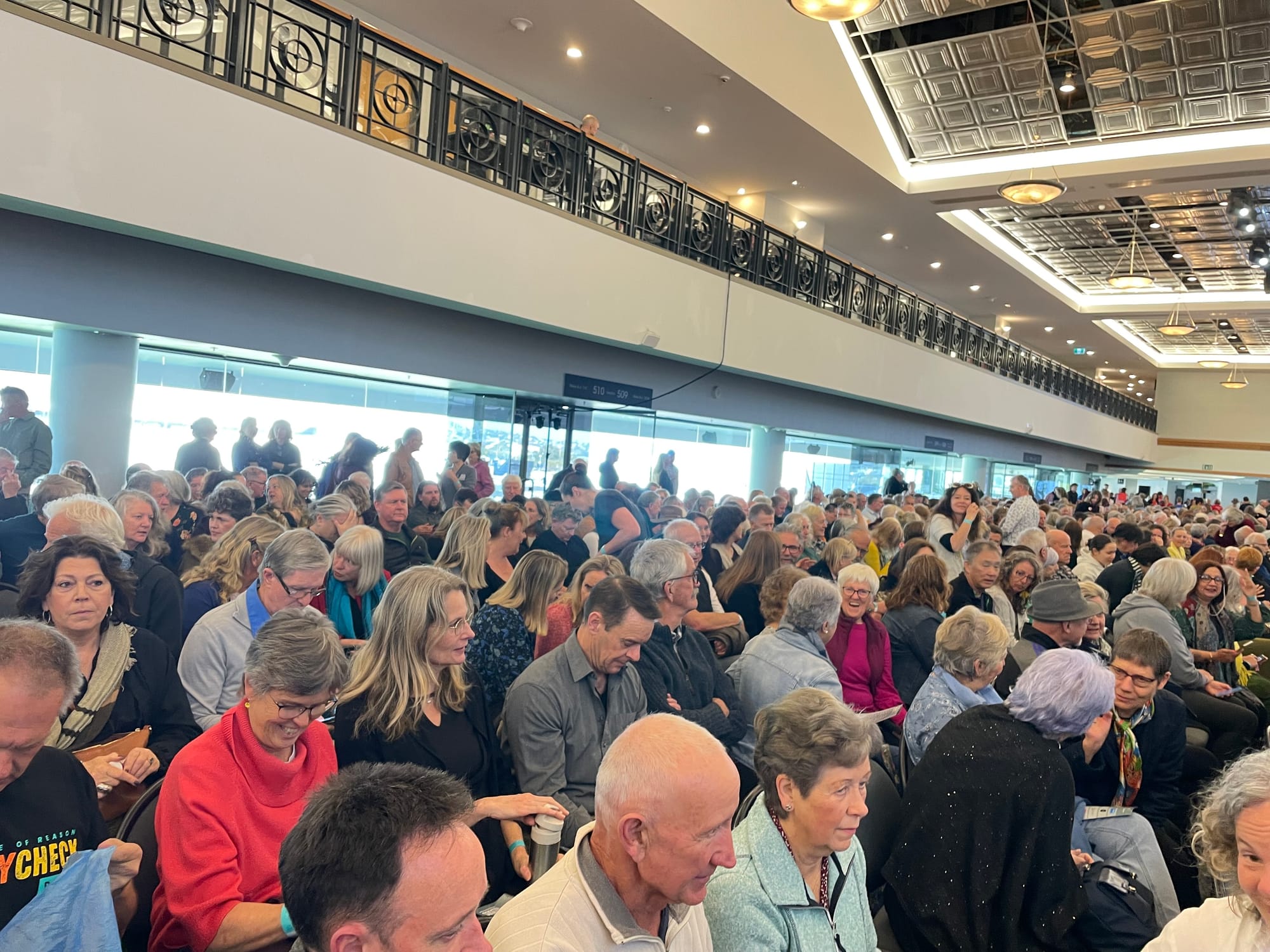 He retold the story of how the New Zealand Medical Council hounded him, for simply doing his job “First, do no harm” and trying to help his patients navigate the propaganda. He has since been exonerated, but many other members are continuing to overcome the unnecessary harassment from what we now know to be a corrupt arm of a captured Government. One of the most profound elements of Matt’s presentation was the moment he asked the audience to raise their hand if they knew a close friend or family members who was confirmed or suspected as being harmed by the injection. (New Zealand’s population was highly ‘vaccinated’ almost exclusively by Pfizer’s Comirnaty). This photo captures our response: