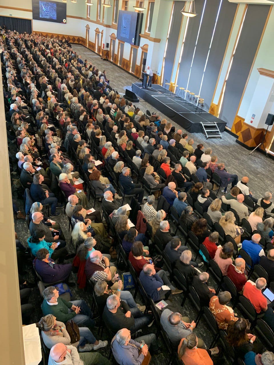This event was sold-out in advance, with a crowd of approx. 1000 people, and about the same number who paid to see the day as a live stream. I was personally a little anxious that we might get cancelled just before the event – as so many other similar gatherings have been in the past. (As we travelled North, I heard that Posie Parker had been forced to cancel her return to NZ due to the risk to her safety). But we had no visible interference or problems either before, during or afterwards. No doubt as one of the speakers mentioned, there were spies in the room, but I saw no evidence of anything other than friendships and curiosity and happiness. And also an overwhelming sense of relief for many at finally ‘finding their tribe’ and feeling the confidence to speak out.