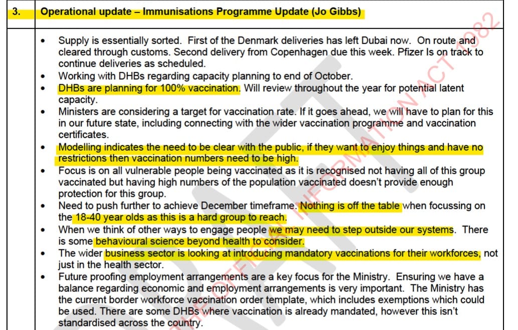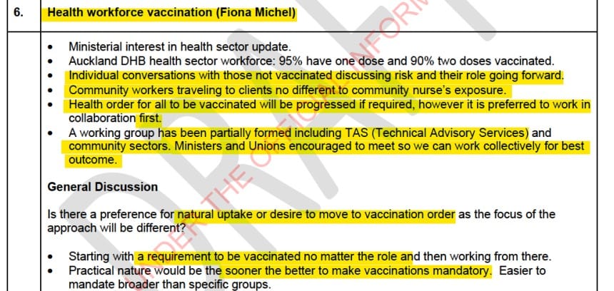 It is interesting to see that, as page 12 of this pdf from an OIA tells us, as early as Sept 7th 2021, there was an underlying assumption that jab mandates were going to be enforced: