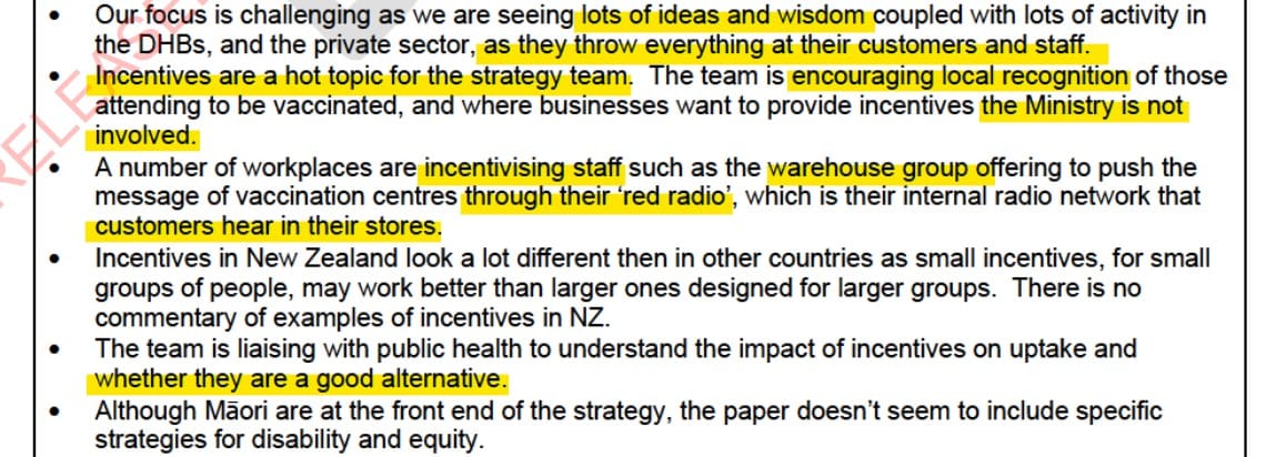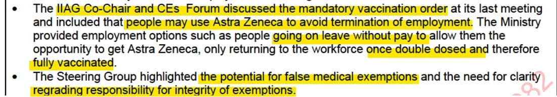 The month following their mention in these minutes, by Nov 2021, The Warehouse Group announced all staff had to be ‘vaccinated’ to keep their jobs, after a $100 incentive had failed to capture everyone’s attention. [Personally, like many such stores in NZ, for 3 years I have boycotted all branches of The Warehouse since their policy decision to discriminate not only their staff, but also their customers.]