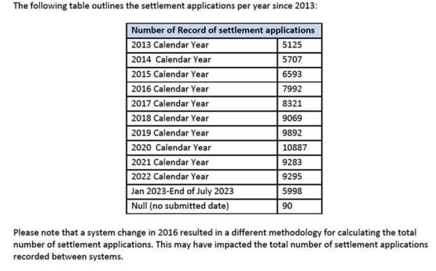 Even with the (uh hum) ‘assistance’ of expensive consultants, the nature of many PGs are drawn-out legal processes – so the 2021 ‘vaccine’ mandates for academics would not have been visible in any data until well into 2022. We can see from the table above, there was an unusually high number of MBIE for Settlements (10,887) in 2020, an increase of nearly a thousand (995) settlements made compared to the pre-covid era. But 2022 (the year that we would expect the impact of the ‘vaccine’ mandate impact to be shown) was surprisingly similar to the levels prior to the covid era.