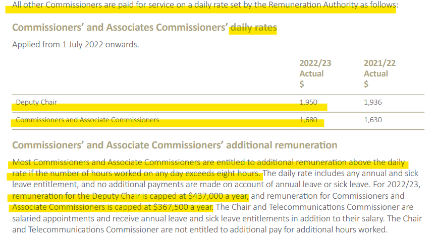 On top of that, the ‘Other’ Commissioners (presumably those in ‘other’ jobs and not on a salary), can claim a “daily rate” of between $1,680 and $1,950. That’s a generous consultancy rate that company levies and taxpayers fund.