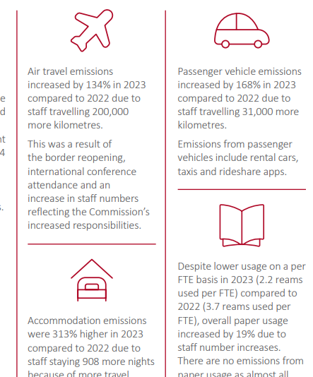 Reading about these and other ComCom jollies reminded me of the utter hypocrisy of the WEF Davos meeting last year, when all the Global Leaders arrived in their private jets. ComCom even admit in their Annual Report how it failed so dismally in their Climate Change targets (how can they preach to others when this is so blatant?):