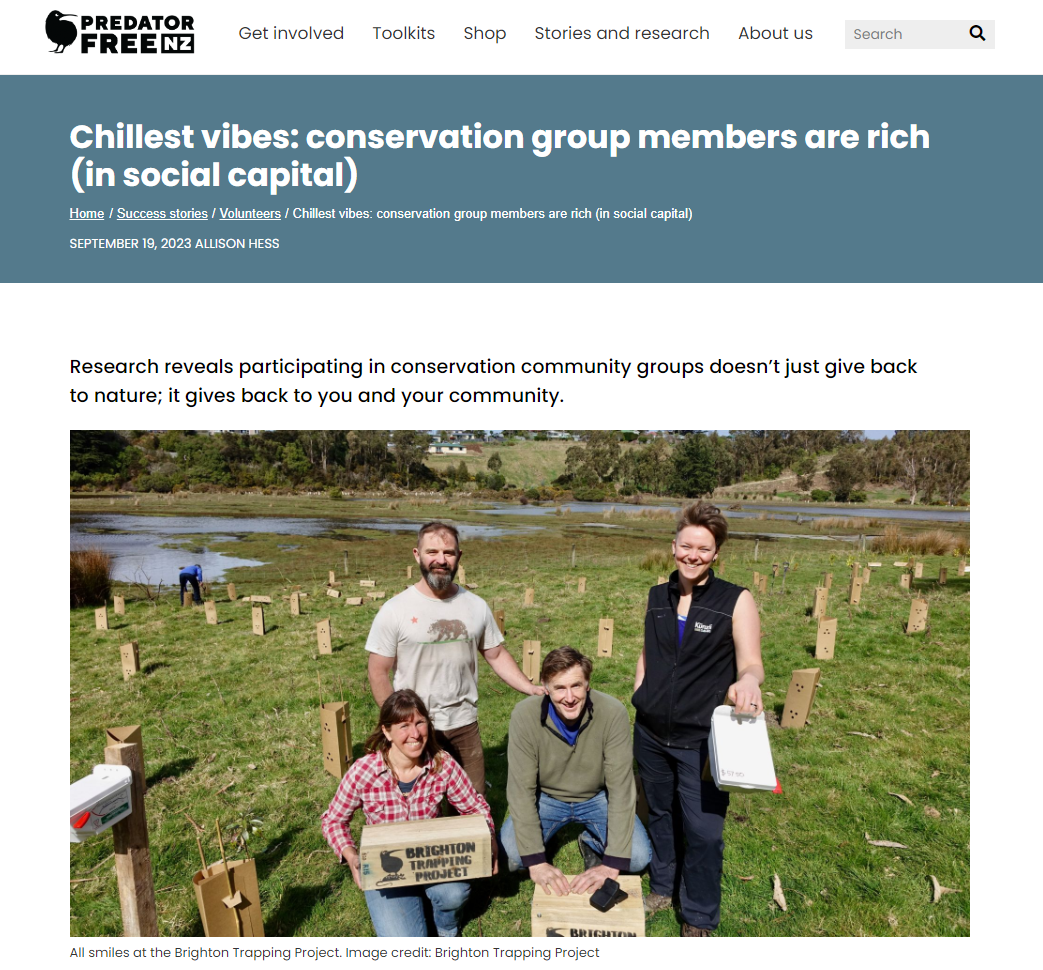 Finally, it all comes down to our sense of self. In NZ professional identity is often lacking, as occupation is seen as less important than family life. So like the climate change activists, the people’s commitment to the poisoning of their own land (and bodies) is seen as FOR THE GREATER GOOD – after all, who would want any native species to go extinct? The actions of volunteers are closely matched to these people’s identities, as they see themselves as undertaking important work for the nation. It is ironic that much of New Zealand’s population lives in an urban area, and have seemingly lost touch with food provenance and water purity through processed food in supermarkets and other conveniences of modern living. Yet they are convinced of their support for ‘rural NZ’ through projects that are in reality detrimental to sustainable farming and rural lifestyles.