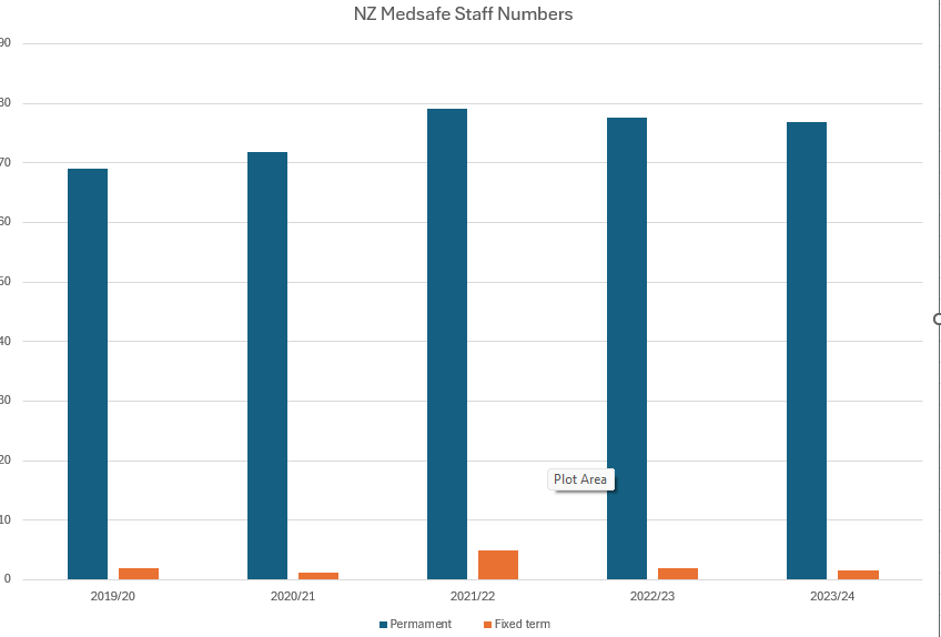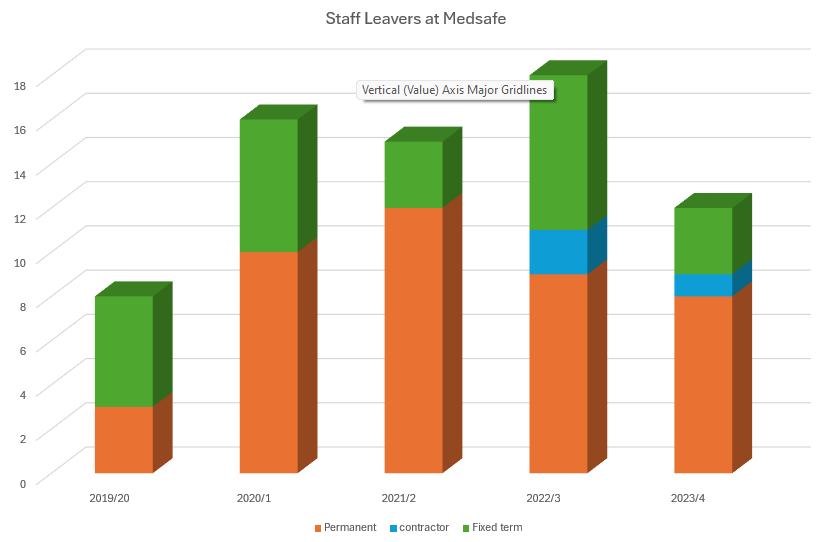 And to also add context to the covid era upheavals, we can see that there was a significant uptick in numbers of permanent staff leaving Medsafe during the covid era: