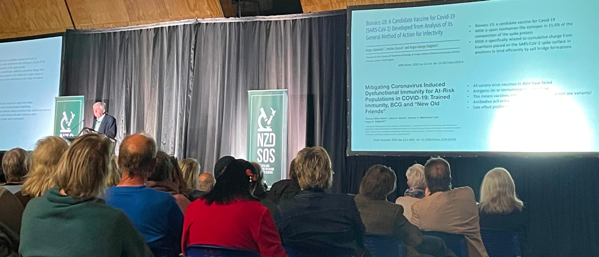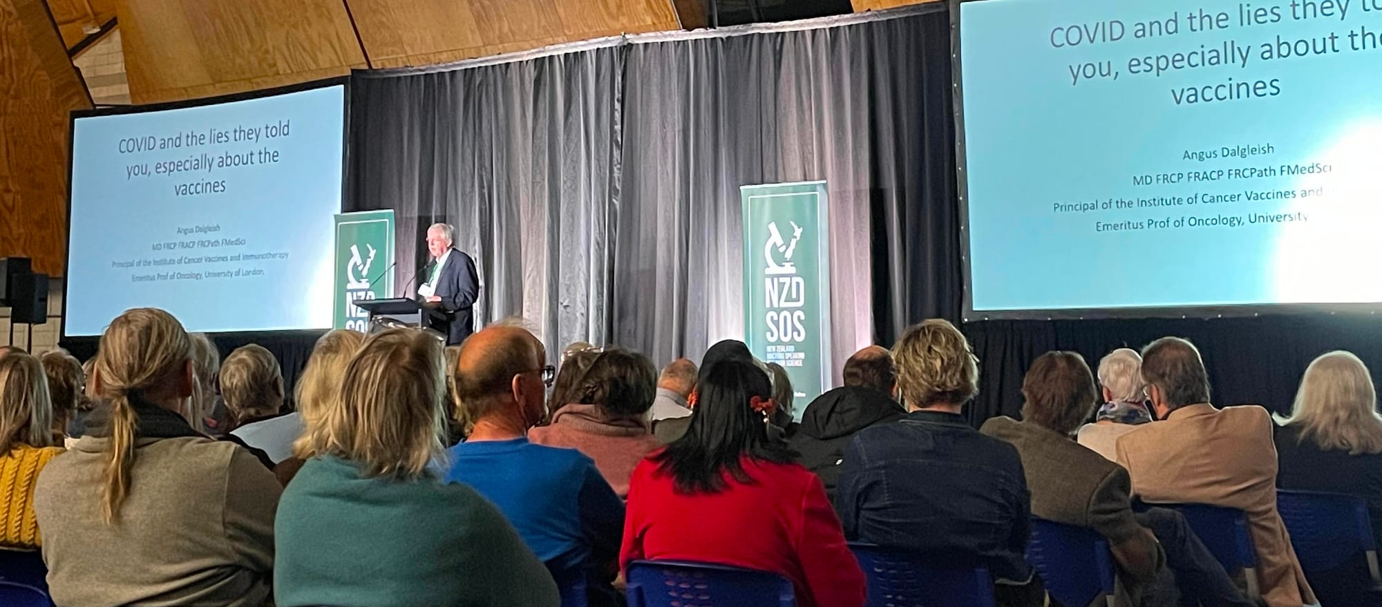 It was a very sobering start with a lecture from expert UK oncologist Prof Angus Dalgleish, who some people may know from podcasted conversations with the likes of Dr John Campbell. The day before the conference, Hoody and John recorded a chat with the Prof, that is worth sharing here. Most notably for me, I remember this convo he had about the benefits of strong immune systems and avoiding cancer: