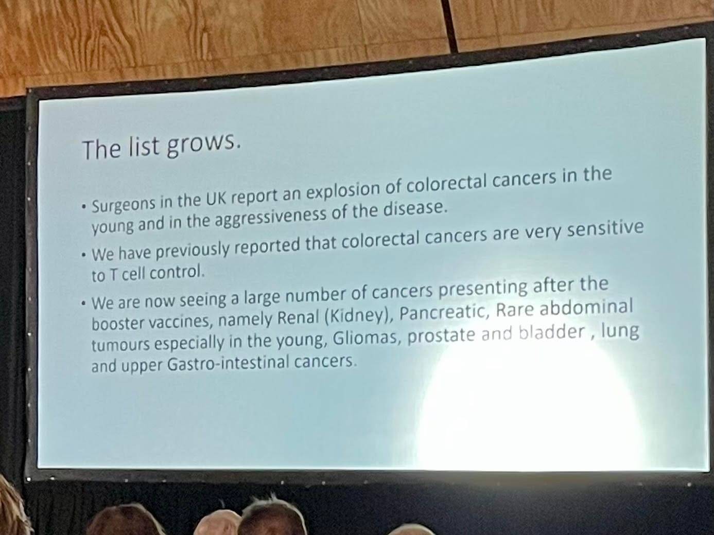 He continued at length (running well over his allocated time) about his concerns for his cancer patients, many of whom had recovered years ago, but after the jabs, had become very ill. He wasn’t allowed to call it turbo cancer, he explained, but everyone did. Tragically, the unusual cancers were also a cause of concern in children.
