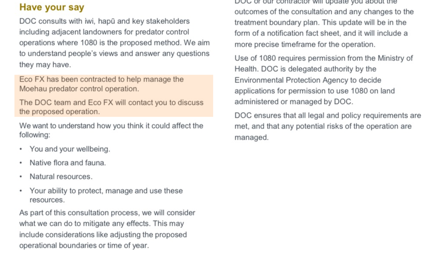 The latest 1080 poison operation has been announced for nearby Mt Moehau for July this year. The last operation was only three years ago (usually it is every 4-7 years). The frequency and intensity and toxicity of these 1080 aerial poisonings are increasing nationwide. On the residents’ communication for Mt Moehau, no mention of Rentokil Initial, only of EcoFX in the pseudo-consultation invitation: