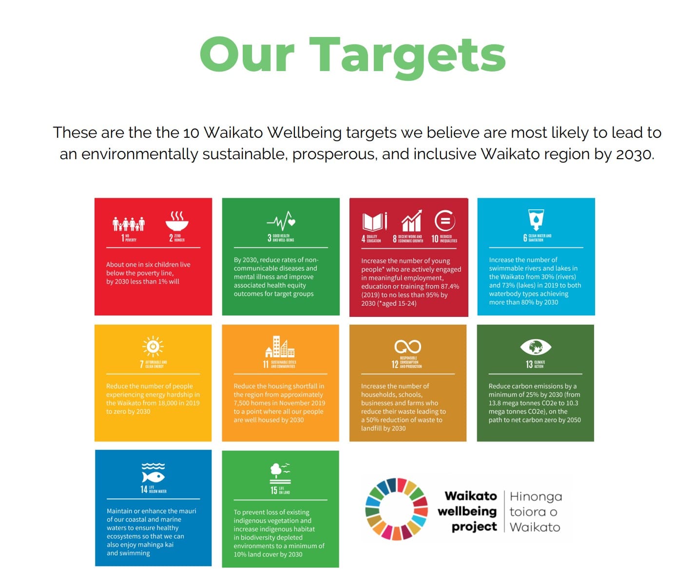 Here is the screenshot of the Waikato Wellbeing Project’s interpretation of the SDGs: