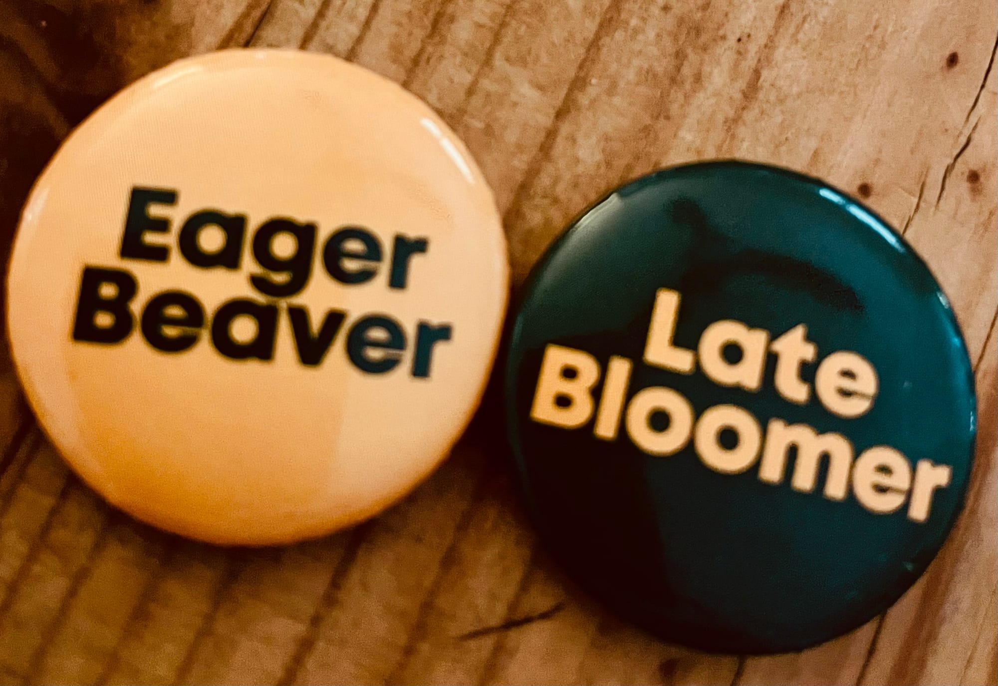I thought it was interesting how one the themes in Sarah’s show involved asking us to choose between two labels for ourselves - Eager Beaver or Late Bloomer. I’ll leave readers to guess for themselves what she meant by these. Free badges were handed out at the end for added ‘value’…