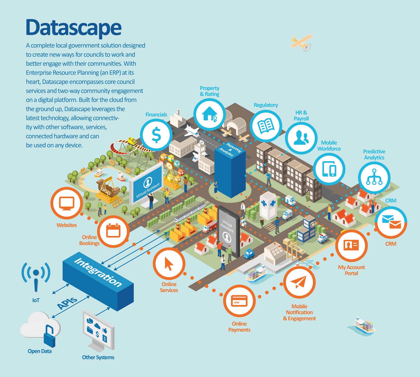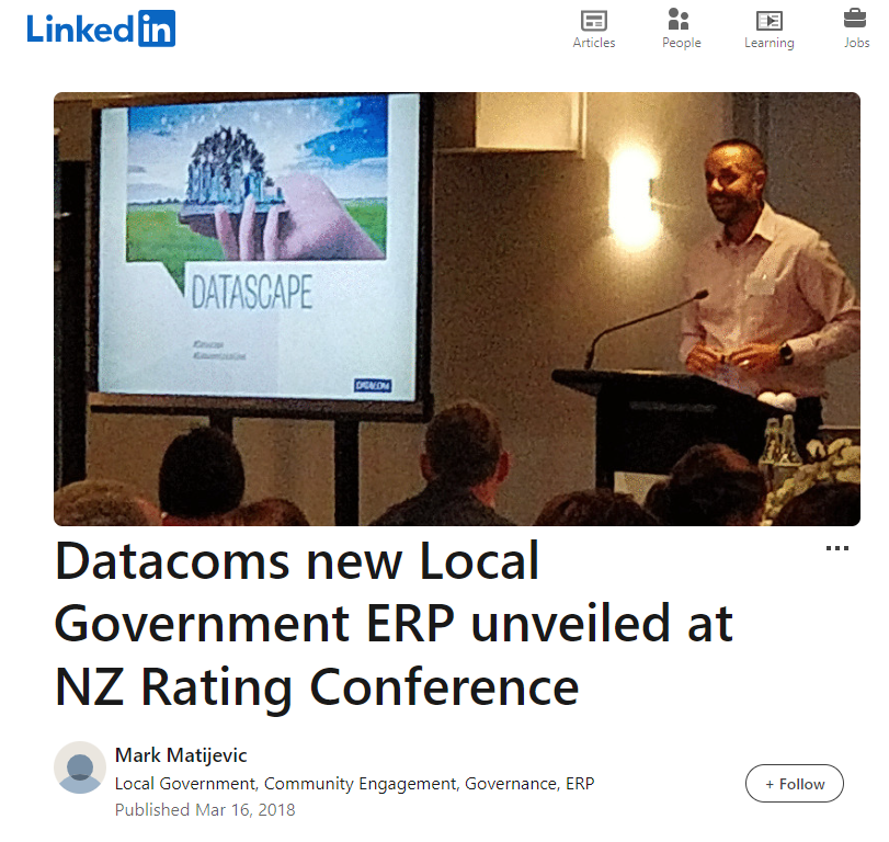“One of my whole dreams for this was to create an ecosystem for a smart city. The key issue with most of the solutions in the market at the moment is they have no connectivity to Internet of Things (IoT), sensors, social media, any of those nice things because they were built twenty years ago. With our solution [Antenno] it is built with that in mind.” Matijevic said Datascape has around 30,000 APIs (application programming interfaces) right now allowing it to integrate with all sorts of other systems and be the centre-piece of a smart city. One council customer, for instance, is installing sensors on its bins so they can request to be emptied. “Smart cites have been around for a while and there are lots of sensors out there, but none of them truly connect to the ERP, which is truly where everything is auditable, maintained and linked to all the other parts of the system.” (my emphasis)