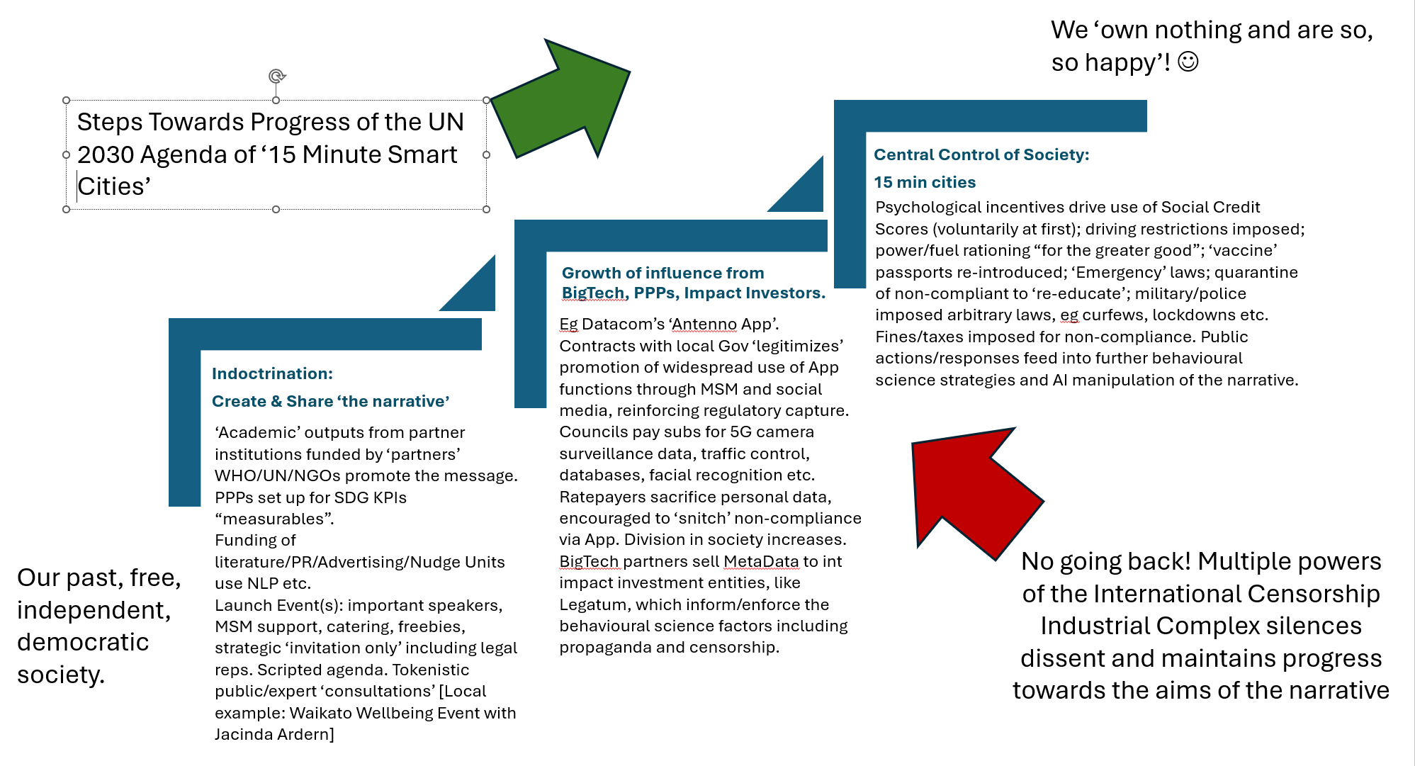 In conclusion, these BigTech companies like Datacom have captured our local Councils and are exploiting our money and data for their own nefarious purposes. The NZ Nudge Unit are working hard to manipulate our behaviours - ignoring the root cause of any problems, like lack recycling provision in NZ. Their actions in turn, feeds the evil UN/WHO Agenda 2030, including the nonsensical ‘15 min Smart Cities’ agenda.