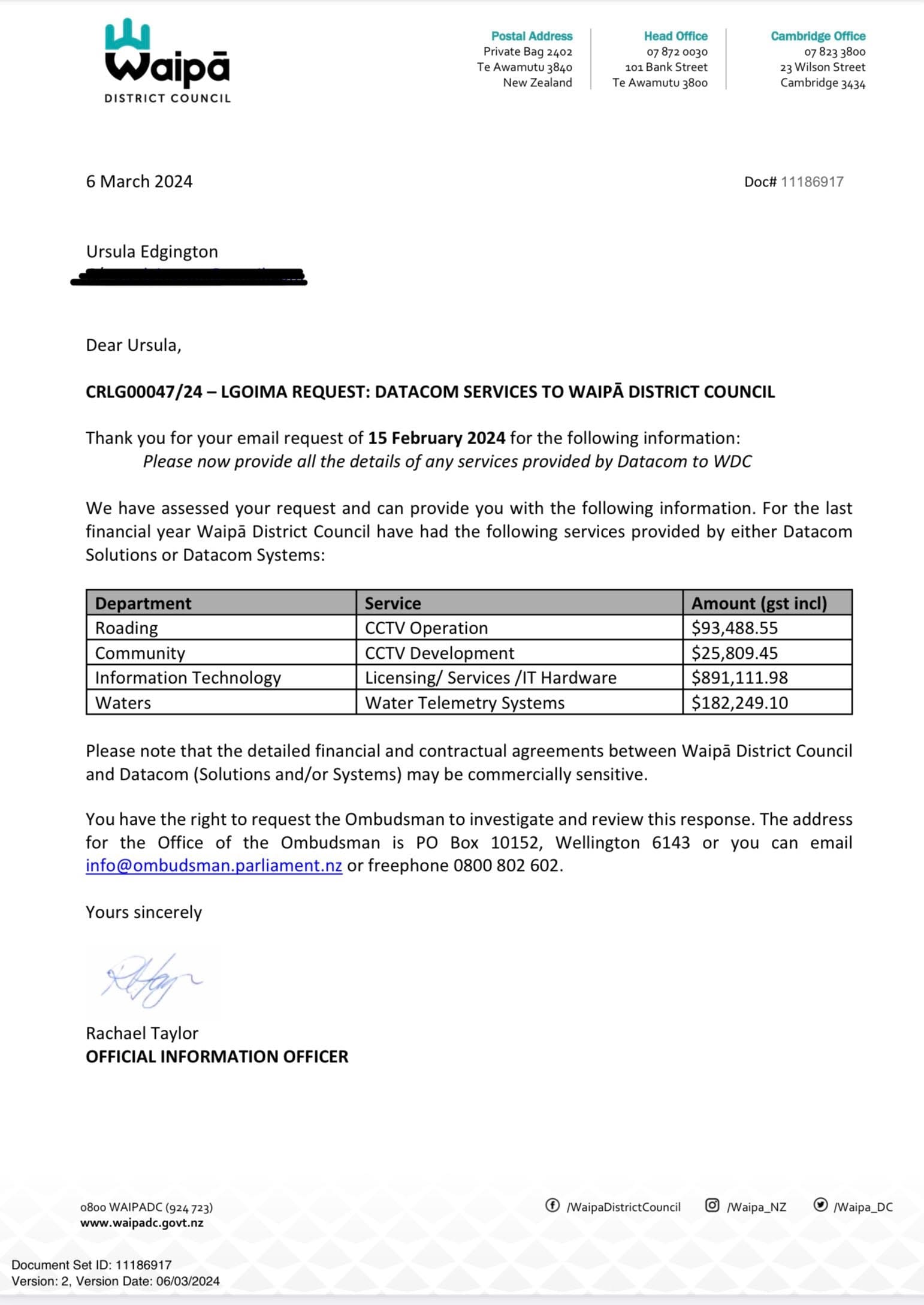 I was assured by our Council (Ref CRLG00003/24) that Datacom are only a creditor, not a provider to council funds. OK then, how MUCH of a creditor?