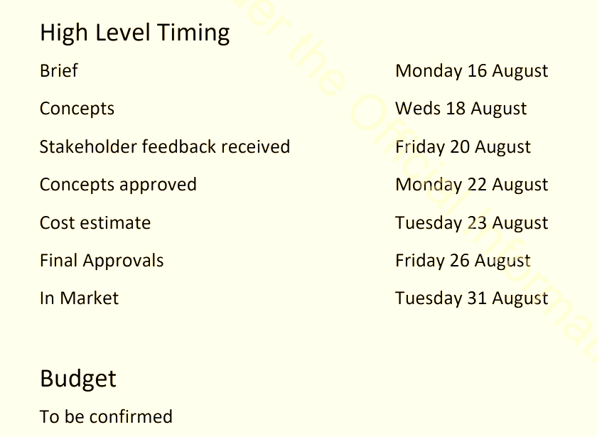 Later in this OIA response, this ‘Agency Brief’ for the One Shot campaign appears: