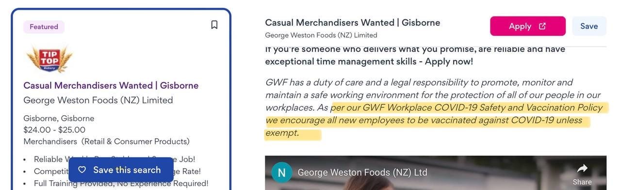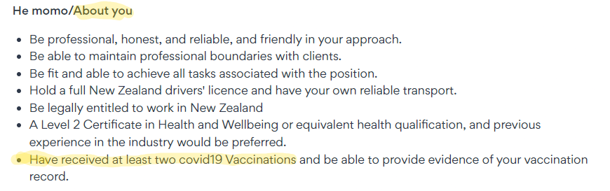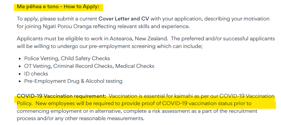 To highlight the extent of the problem, I’m providing a ‘snapshot’ - eight job vacancies - advertised with covid ‘vaccination’ requirements (screenshots included):