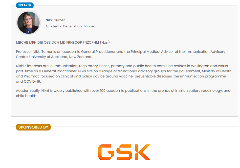 Cue the latest offering of the official NZ Continuing Professional Development (CPD) Goodfellow Unit webinar from Prof Nicola 'Nikki' Mary Turner, Director of Immunisation Advisory Centre (IMAC). The Public Private Philanthropathic Partnership (PPPP) UniServices is a wholly owned (commercial) subsidiary of the University of Auckland. Both entities are pseudo-research centres funded by BigPharma, as I have written about before in relation to the covid injections, for instance here: